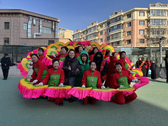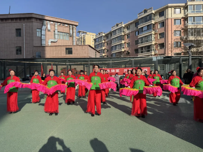 活动在欢快激昂的歌声中正式拉开帷幕,龙宇社区花儿朵朵舞蹈队带来的传统扭秧歌表演率先登场,将现场气氛瞬间点燃。她们笑容满面,步伐矫健,丰富的队形变化和充满感染力的表演,不仅展现了社区中老年居民昂扬向上的精神风貌,更传递出浓郁的节日喜庆和民俗文化韵味。围观居民纷纷鼓掌喝彩,不少人情不自禁地跟着节奏律动,孩子们也兴奋地模仿着动作,广场上一片欢声笑语,为后续的美食分享活动营造出极其热烈、融洽的开场氛围。