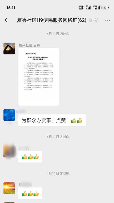 “为群众办实事,点赞!”大家在网格群里热情留言,不少居民还主动表示,施工期间会积极配合,文明出行。
