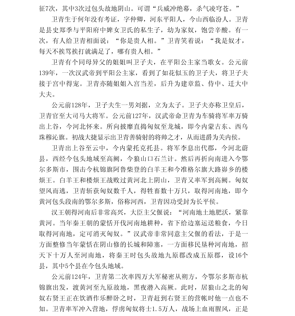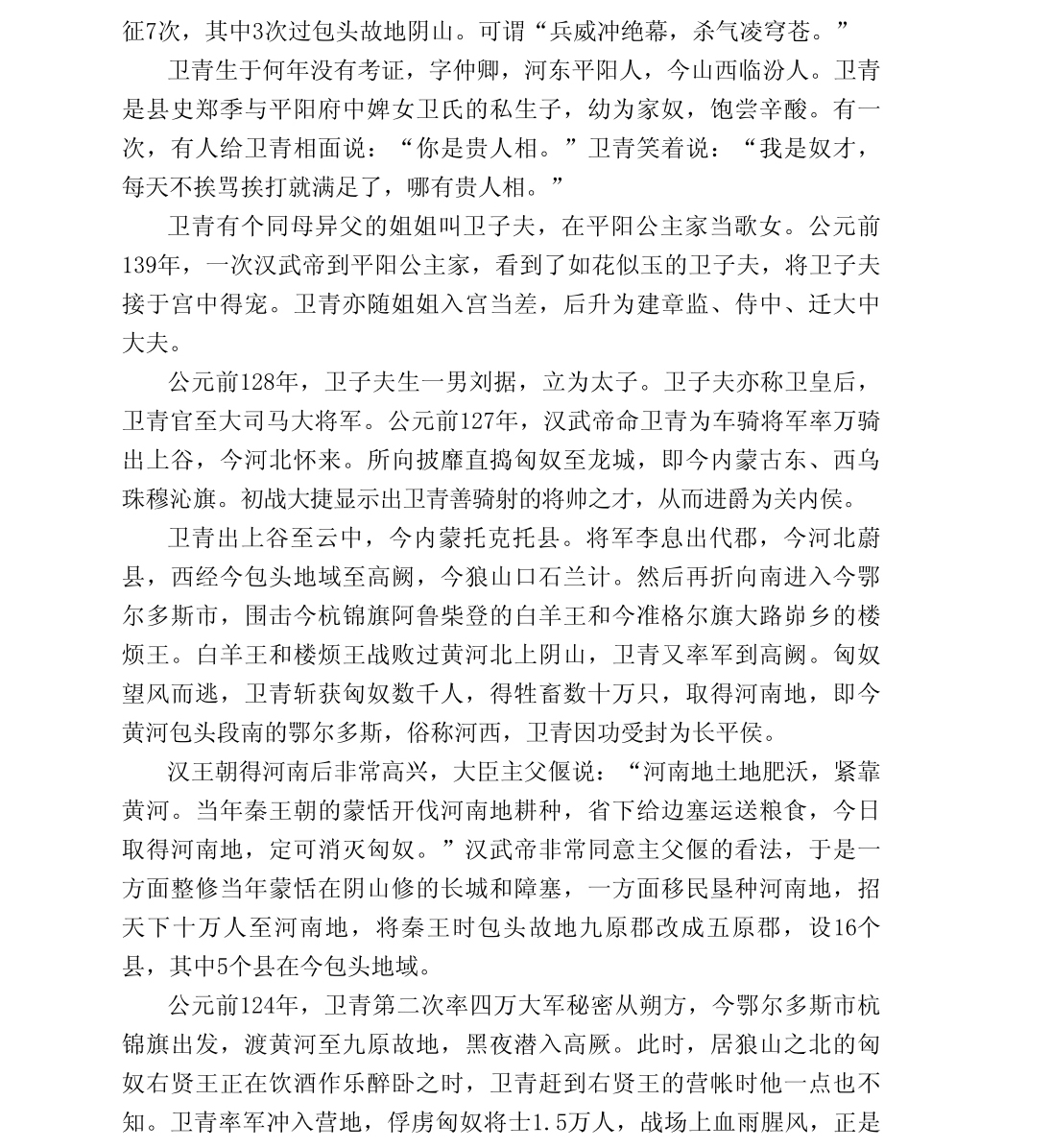 卫青三过九原故地击匈奴
