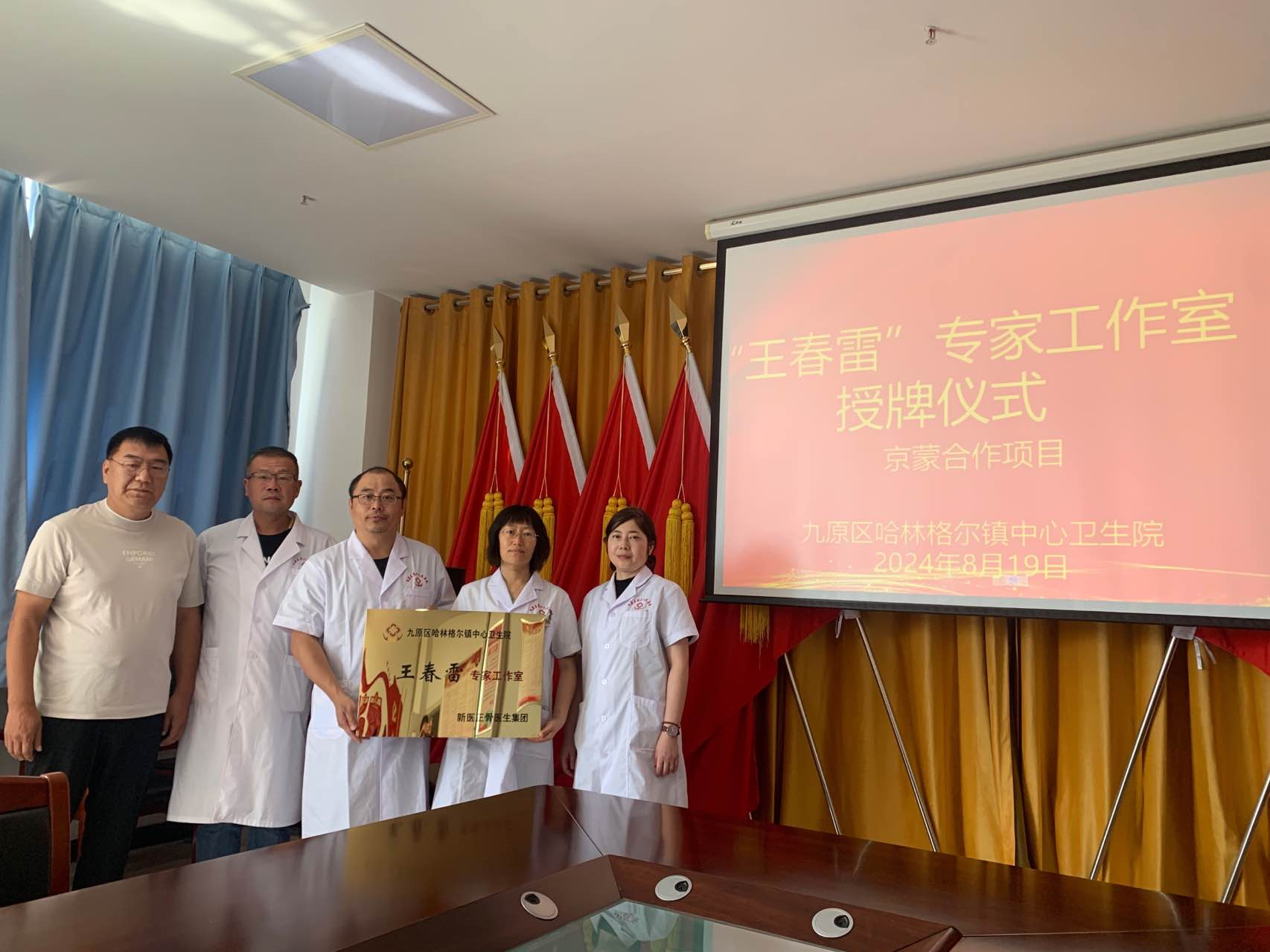 8月19日上午,哈林格尔中心卫生院在三楼会议室举行了“王春雷”名医工作室授牌仪式,此次授牌仪式是在民盟包头市委、民盟九原区区委总支牵头下促成医疗技术合作。王春雷教授及九原区民盟总支主委陈瑞、我院院长刘瑞芬、中医科主任张云霞参加授牌仪式。