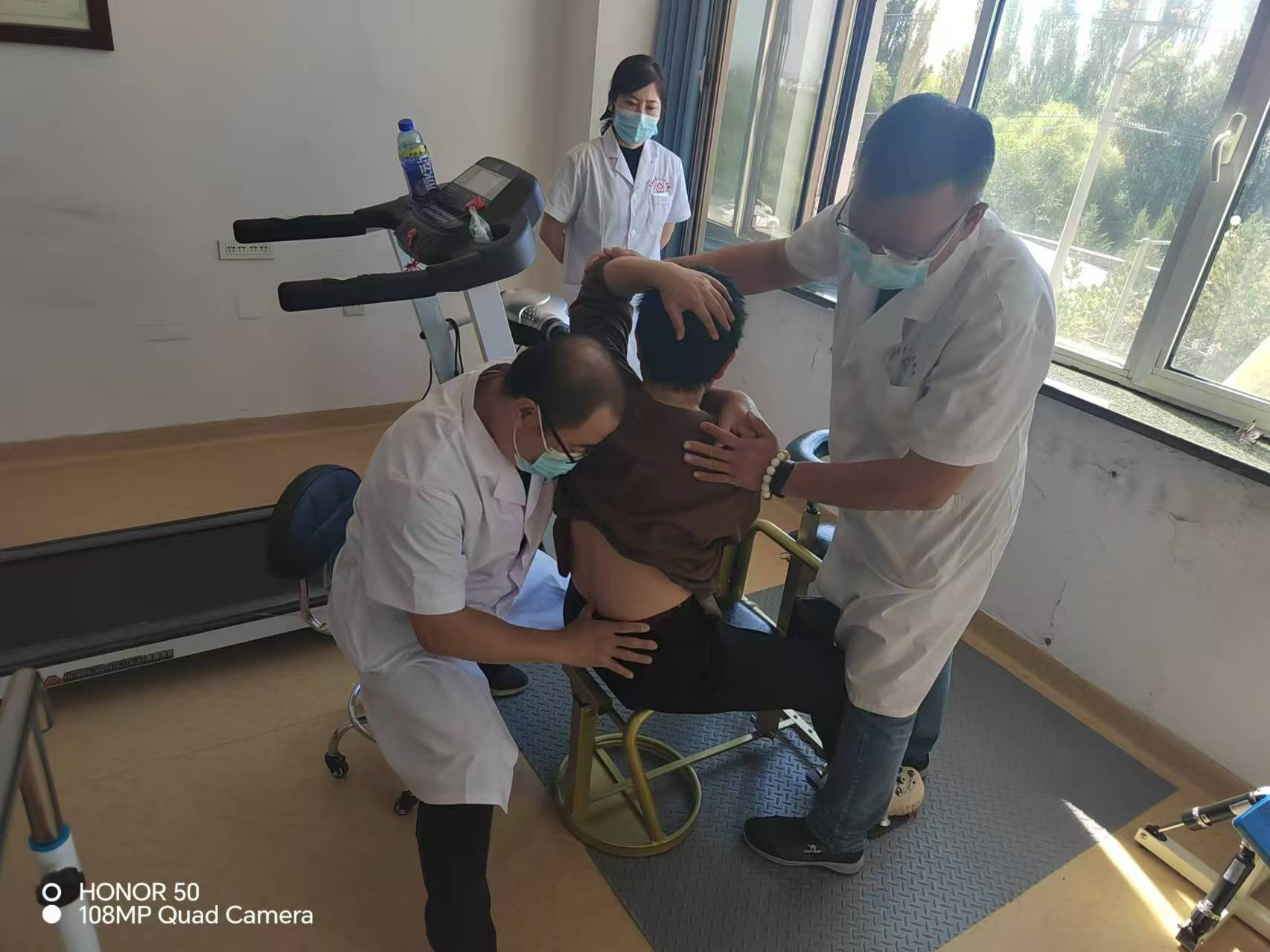 揭牌仪式结束后,王春雷专家在中医康复科开展现场教学活动。通过问病情、看病历,阅片、查体等全面了解患者的详细情况,对病情进行专业分析,耐心细致解答患者及家属疑问,根据每一位患者的具体病情,给予进一步检查和治疗方案。下一步,王春雷教授团队将定期在哈林格尔中心卫生院开展新医正骨技术疑难病例远程会诊、培训。