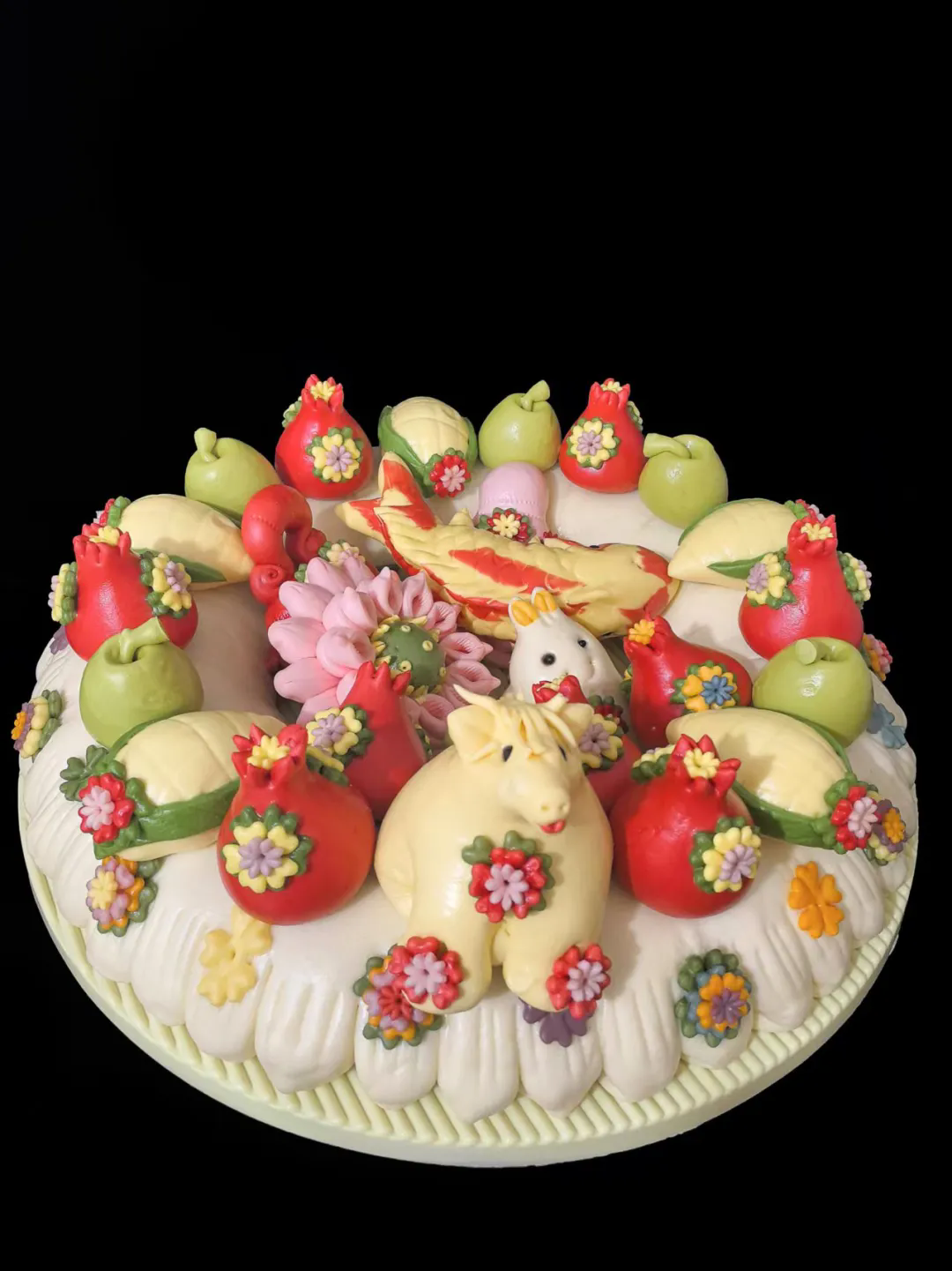 制作好的面塑马儿色彩鲜艳、造型圆润,充满了浪漫主义的想象,是装点节庆氛围的绝佳点缀。