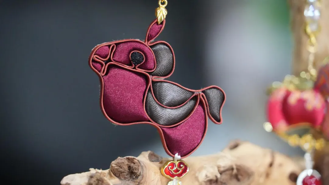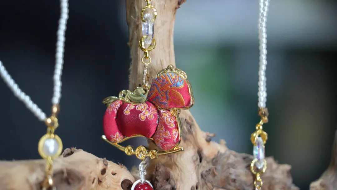 有的被盘成立体的小马驹,圆滚滚的身子,锦纹在光下明明暗暗,像极了阳光下奔跑的马儿;有的被做成挂饰,缀以流苏、珠玉,挂在包上、车中,便是“马上有福”、“马上如意”的无声祝福。非遗传承人将马的图案通过宋锦、盘扣的方式融入饰品中,古色古香的锦纹配上骏马的剪影,显得格外典雅。
