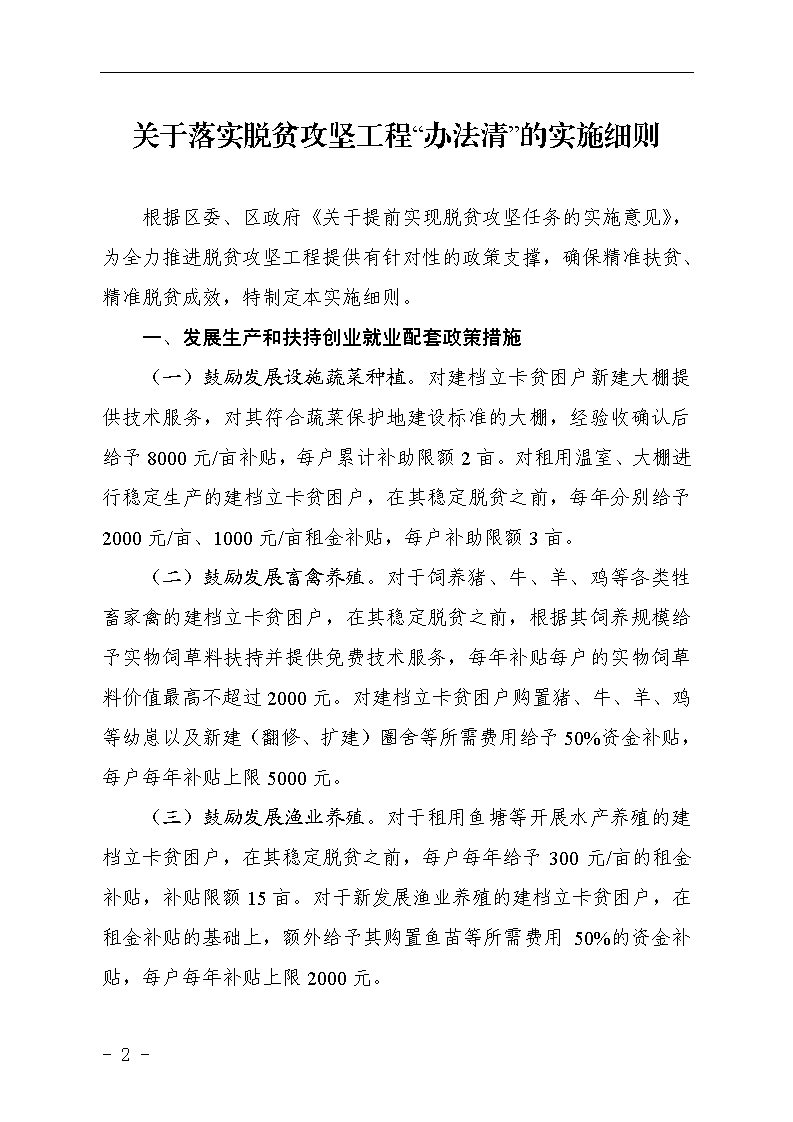 关于落实脱贫攻坚工程“办法清”的实施细则