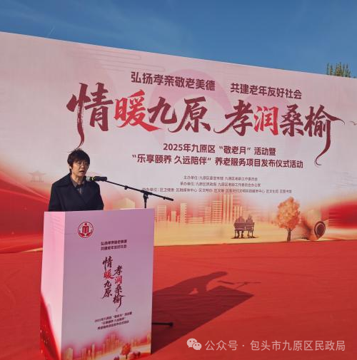 九原区区委常委政府副区长高阳出席活动并致辞。他先向老年群体表达尊崇关怀,向养老工作者、志愿者致谢;再回顾九原区近年在养老基础保障、服务供给、权益守护上的举措成效;后明确“十四五”收官、“十五五”铺展时,从建强全域养老体系、打造医养康养样板、构建共建共享生态三方面推进老年友好型社会建设;最后强调以此次活动为起点,落实关怀、擦亮“老年友好”名片。讲话围绕“以老人需求为导向,提服务、建友好社会”展开,内容详实、逻辑清晰、凝聚共识,为养老事业指明方向,彰显心系民生的风范,增强社会敬老爱老助老自觉。