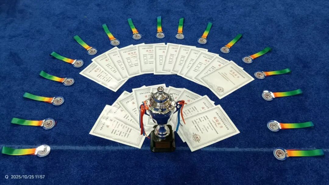 赛事期间,队员们在八个竞技项目中火力全开,共斩获7枚金牌、4枚银牌,另有2个项目获第四名、1个项目获第五名;团体项目中,队伍同样表现出色,成功摘得亚军荣誉。最终,该校以119分的优异成绩,稳居自治区总成绩第二名!